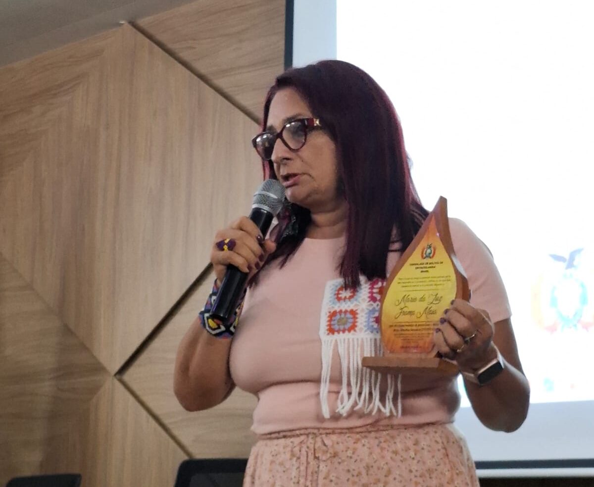 Durante a manifestação de agradecimento, Maria da Luz destacou sua gratidão ao Consulado da Bolívia e às instituições parceiras que contribuem para a construção de ações conjuntas na área de direitos humanos.