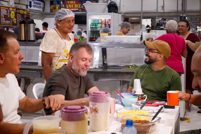 A primeira parada foi na feira do Mercado Elias Mansour, um dos principais pontos de comércio popular da capital.
